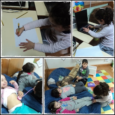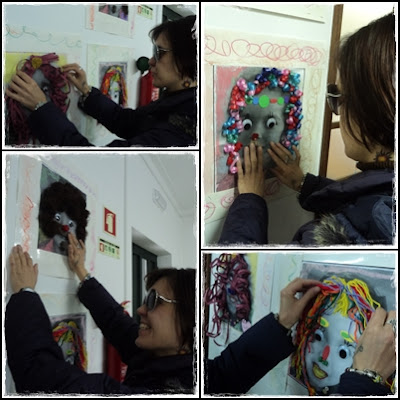 Mesmo sendo quase impossível a Aida adivinhar de quem seriam os retratos, conseguiu adivinhar quase todos os materiais que utilizamos nos nossos disfarces. E o que ela se riu, quando descobriu que o Leandro tinha um bigode :-)