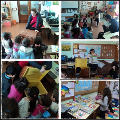 Mas a primeira pessoa especial a chegar foi a Aida. Foi brindada, pelo Tomás, com a leitura do livro que ele leu com a família, "A zebra Camila", e adorou a história. E ainda falamos com os amigos da Sala Amarela.